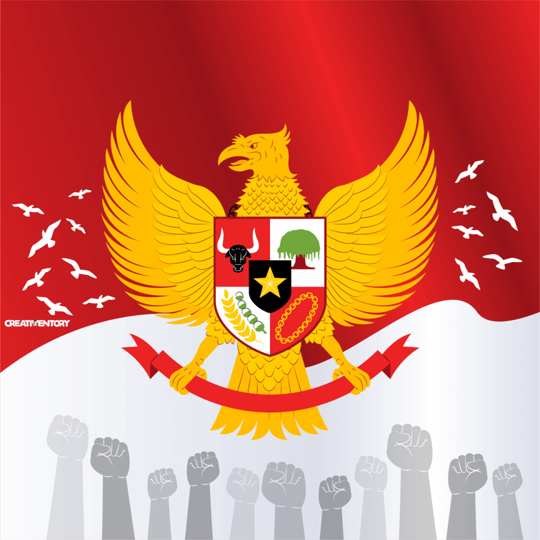 Kalo anda pengen simple, bisa coba dengan desain merah dan siloute tugu pancasila berikut ini.